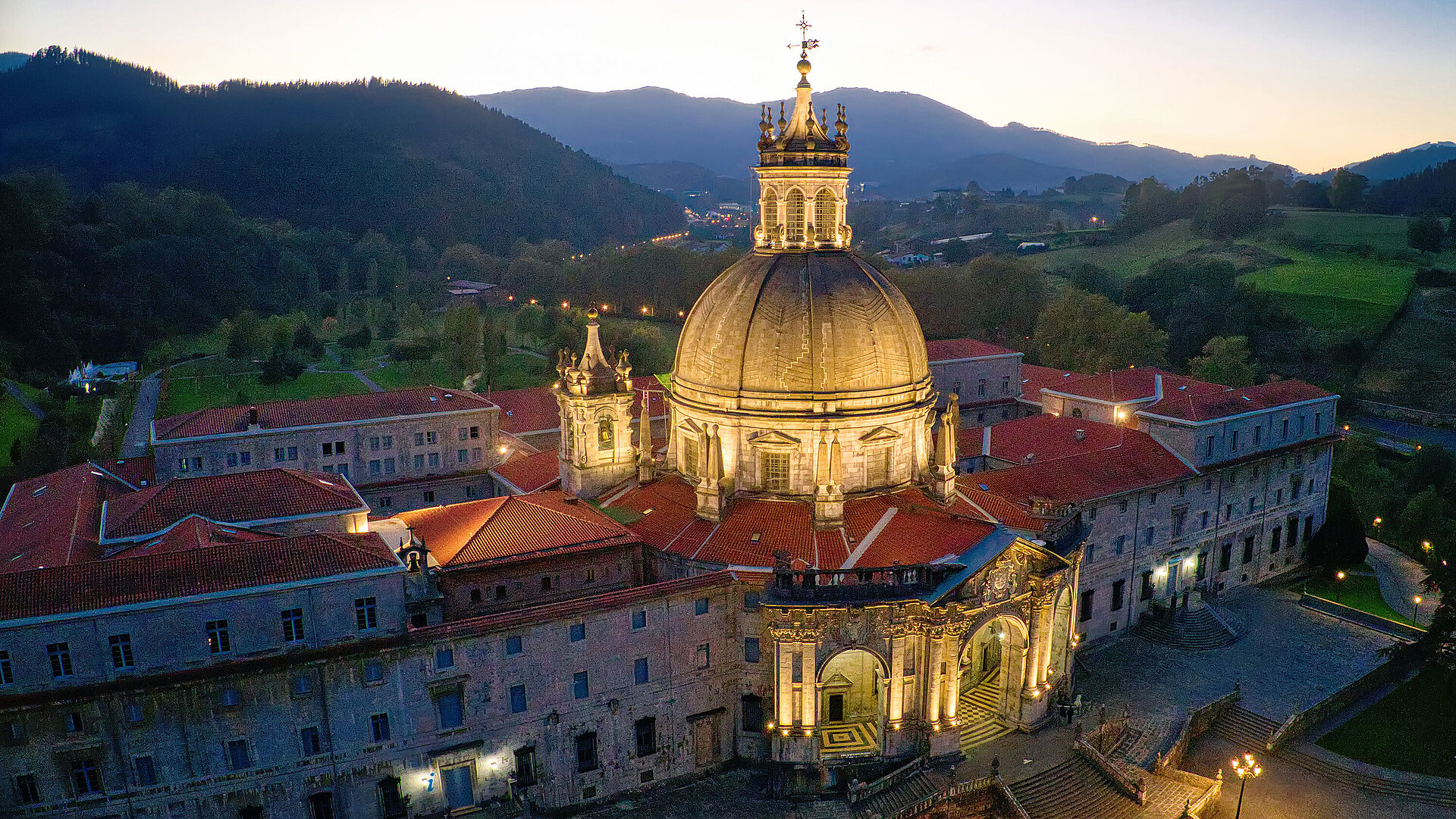 Die Basilika im Heiligtum Santuario de Loyola steht in einer idyllischen Umgebung inmitten von Bergen im Urola-Tal (Baskenland, Spanien). Kürzlich wurde die Basilika von GRIVEN in Zusammenarbeit mit LAMP in ein warm-weißes Licht gehüllt.