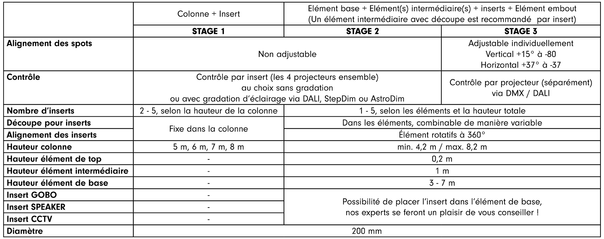 Notre produit premium, qui offre une liberté de conception maximale! Choisissez parmi des éléments et des hauteurs différents, en bénéficiant aussi des avantages d‘une variabilité complète de chaque projecteur – pour une scénographie unique, tout à fait selon vos souhaits et vos idées. STAGE 3 – Que le spectacle commence!